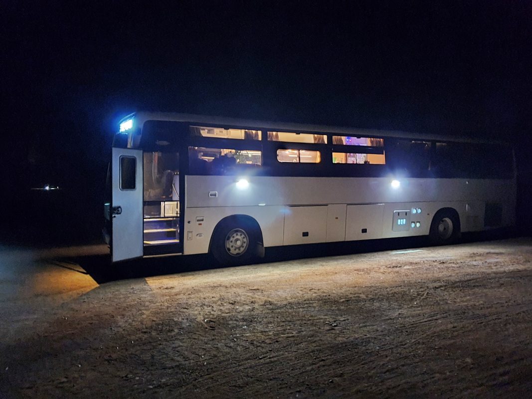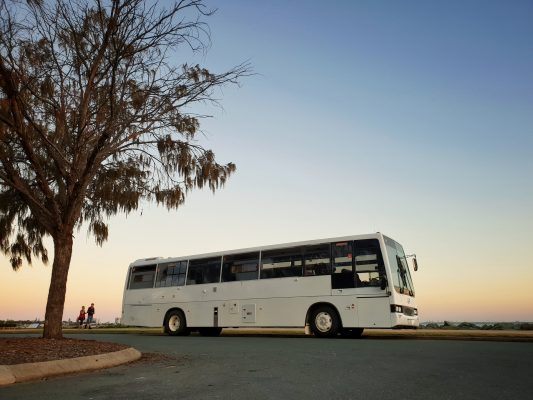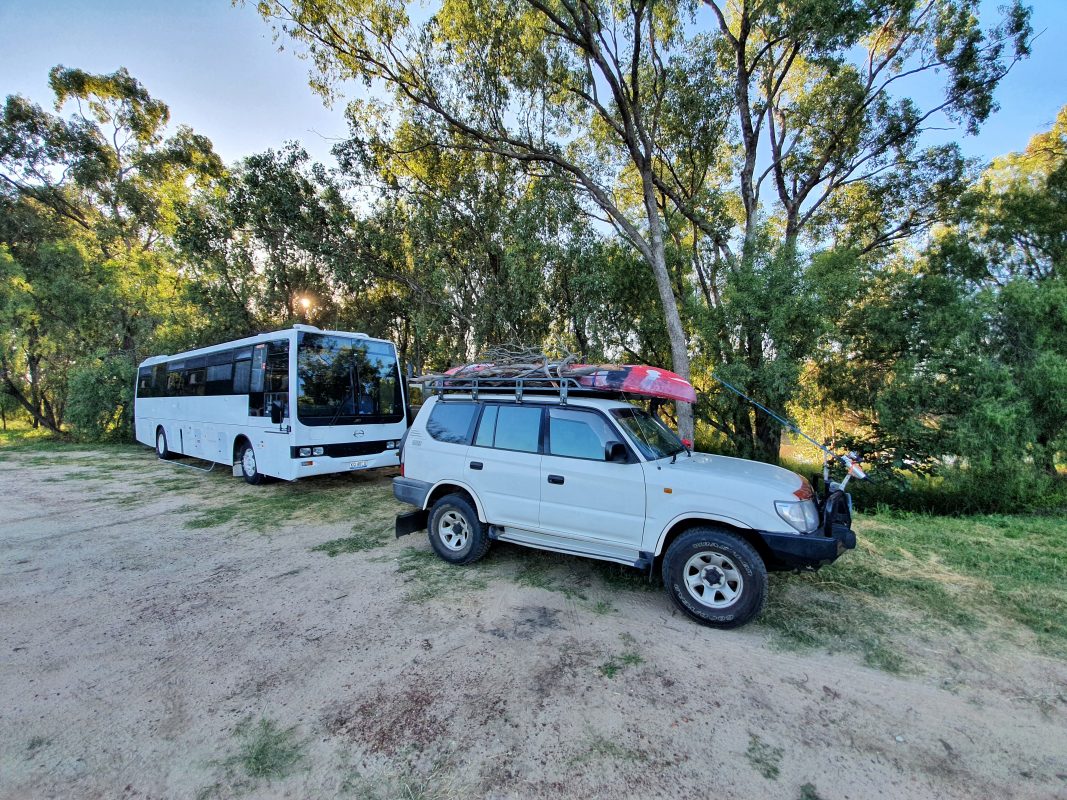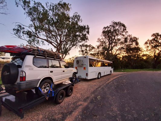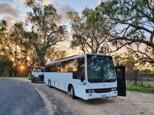 powered. We’ve been rained in at Birdsville, done a slow crawl along the Oodnadatta, and made 589 point turns to extract ourselves from tiny carparks. We’ve spent nights amongst the red pindan dunes, on the edge of the great salt lake Kati Thanda, and atop windswept jump-ups on gibber plains. We’ve even woken to find the incoming tide has crept under the bus!