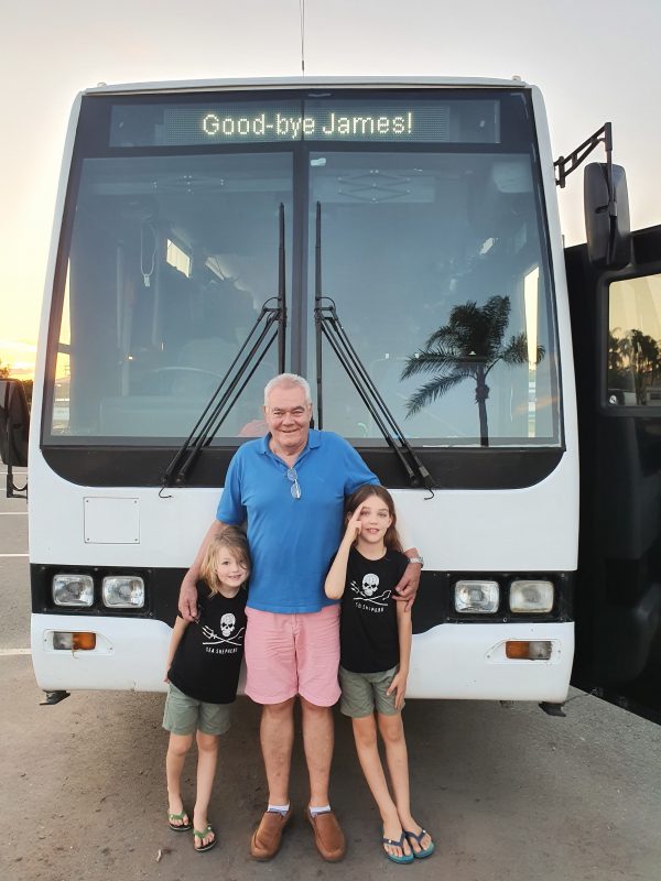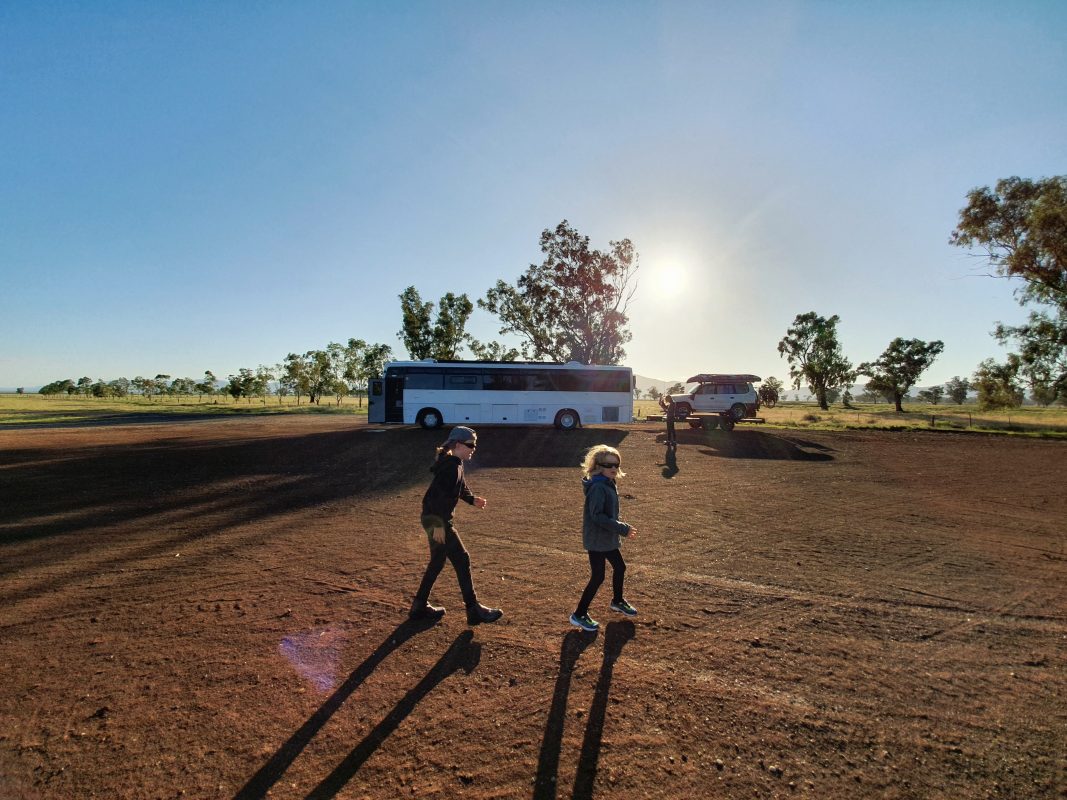 Kakadu, Uluru-Kata Tjuta, Ningaloo, Purnululu, Karijini, Nitmiluk and Litchfield, Ikara-Flinders Ranges, Carnarvon Gorge, Port Campbell, the Coorong, the Daintree: it’s impossible to convey the significance of all this. We’ve witnessed rock art, petroglyphs, burial crypts, massacre sites, middens, wells, grinding stones, complex cultural systems, astounding land and seascapes, dinosaur footprints, ancient coral reef and inland seabed, crocodiles, sharks and turtles and reef fish, emu chicks and cassowaries, spinifex hopping mice and rock wallabies. And the dark emu, a beacon of other lives beyond the campfire. If all this wasn’t a constellation of life in our very hands, the bus meant we could live at my (Sam’s) parents place for three months before my Dad died.
